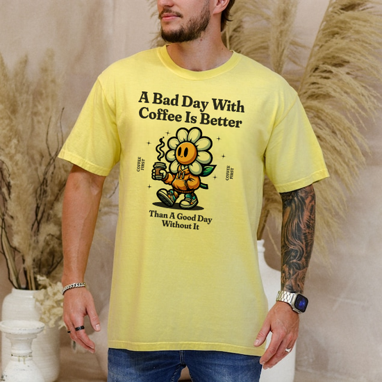 Embrace your love for coffee with our "A Bad Day With Coffee T-Shirt." This unisex heavy cotton tee is the perfect staple for any wardrobe, combining comfort, durability, and style. Whether you're having a tough day or just want to showcase your coffee enthusiasm, this shirt will be your go-to choice.